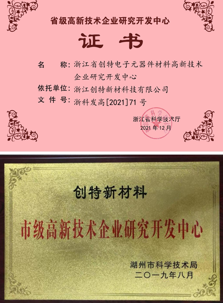 The company has a material research institute, two material research and development centers, and a research and development team of 58 people, including one professor enjoying the special allowance of the State Council, one national expert, one overseas engineer in Zhejiang Province, two leading talents in South the Taihu Lake Lake, Huzhou City. The company has 36 authorized patents, completed two key scientific and technological projects in Huzhou City, won one Zhejiang manufacturing group standard, one Zhejiang manufacturing product label certification, and seven provincial industrial new products in Zhejiang Province.